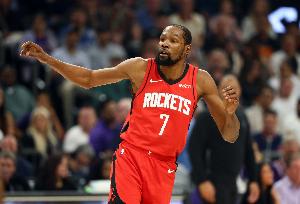 “另一方面,火箭也在应对伤病,他们的超级球星杜兰特遭受了右膝挫伤,我被告知,他在周四(北京时间昨日)的训练中膝盖撞到队友后受伤,在周五接受了核磁共振检查。不过,乐观估计他能够出战G1。但杜兰特的身体状况也值得关注。”Shams说。