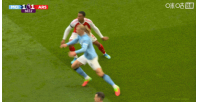 比赛第38分钟,哈兰德和加布里埃尔争抢高空球时双双倒地,二人从倒地到起身一直在缠斗。