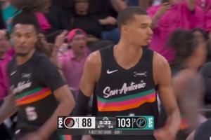 GIF-文班撤步三分再轰进!33分超邓肯!队史季后赛首秀得分纪录!